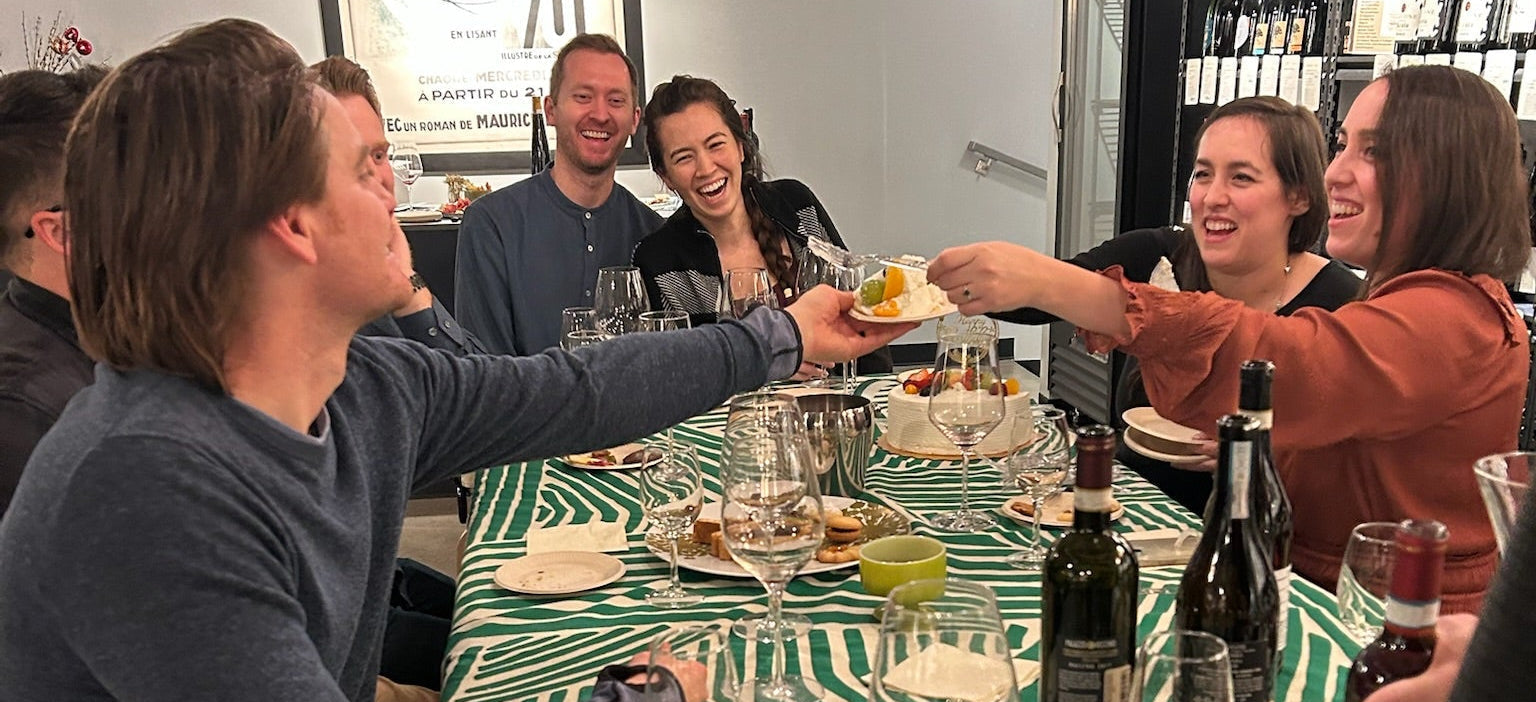 Our space comfortably accommodates small groups and is perfect for a holiday gathering with family, a birthday party with friends, or a team-building event with collegues.